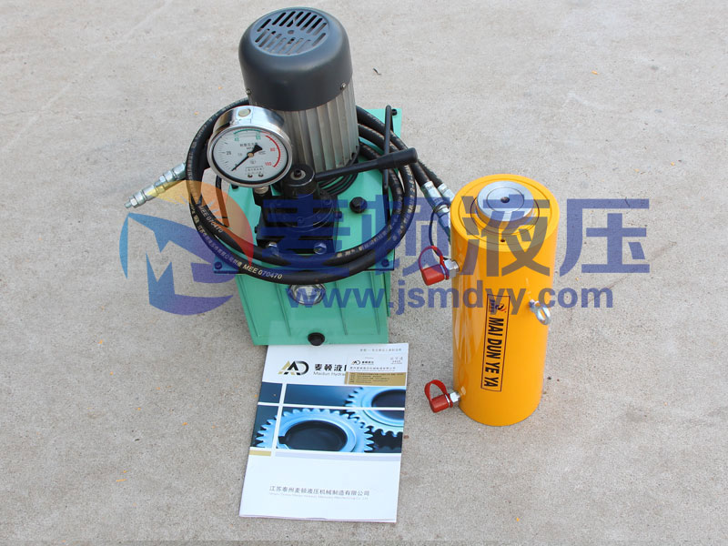 5、使用時先將手動泵的快速接頭與頂對接,然后選好位置,將油泵上的放油螺釘旋緊,即可工作。將放油螺釘旋松,油缸卸荷。