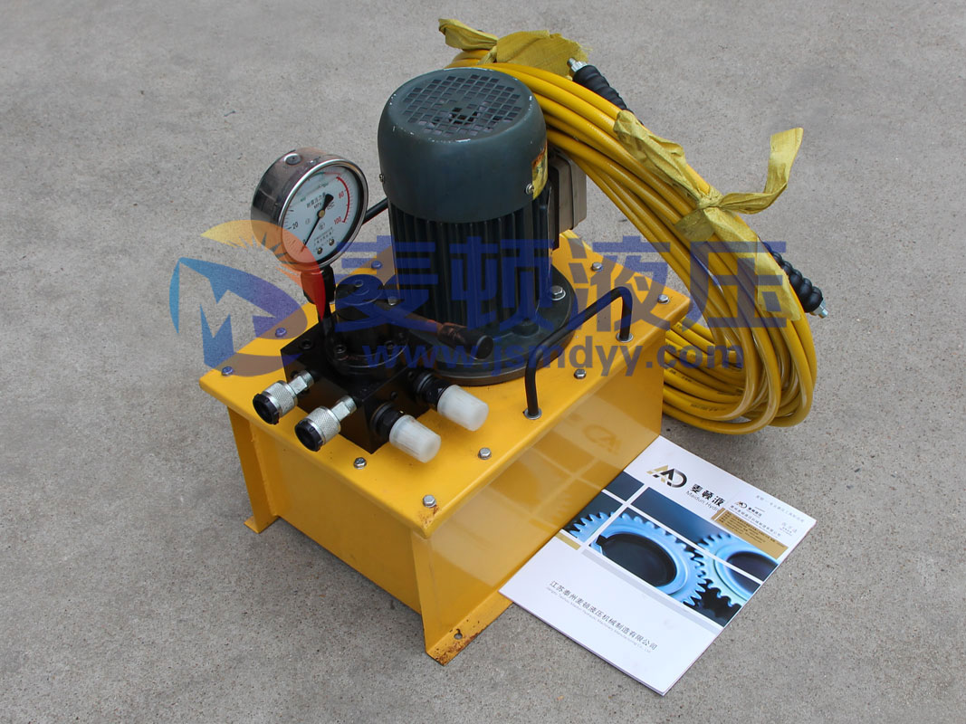 使用時應打開放氣螺母,將集油塊上開關打開,插上電源,并將快速接頭套在配用液壓器械上的快速頭上。按動電源開關,待電機轉動1-2分鐘,將開關關閉置于增壓狀態,此時輸出液壓油會進行各項工作,輸出液壓油隨負載的增加而自行增壓進行各項工作直至63MPA。